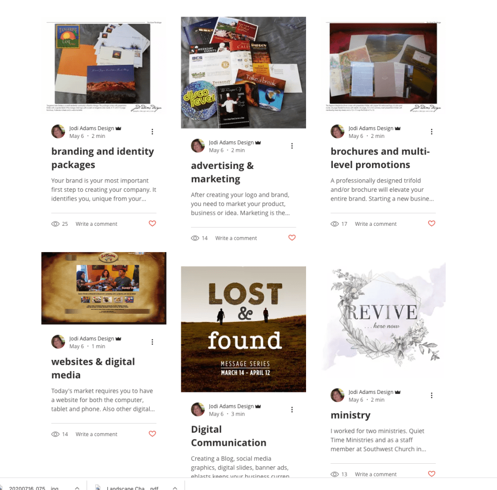 Blogging is a good and free way to get not only your business out there but a tutorial on how to get it done. My blogs are how I go about designing, my thoughts, my concepts and how I tackle it. I also blog on my thoughts and feelings of what is going on in today’s wacky world! Every website offers a blog and if you hire me to design your site for you, I will give you the tools you will need to blog yourself. Or, pay me a maintenance fee and some content and images and I will keep it up for you. Here are some of my blogs.